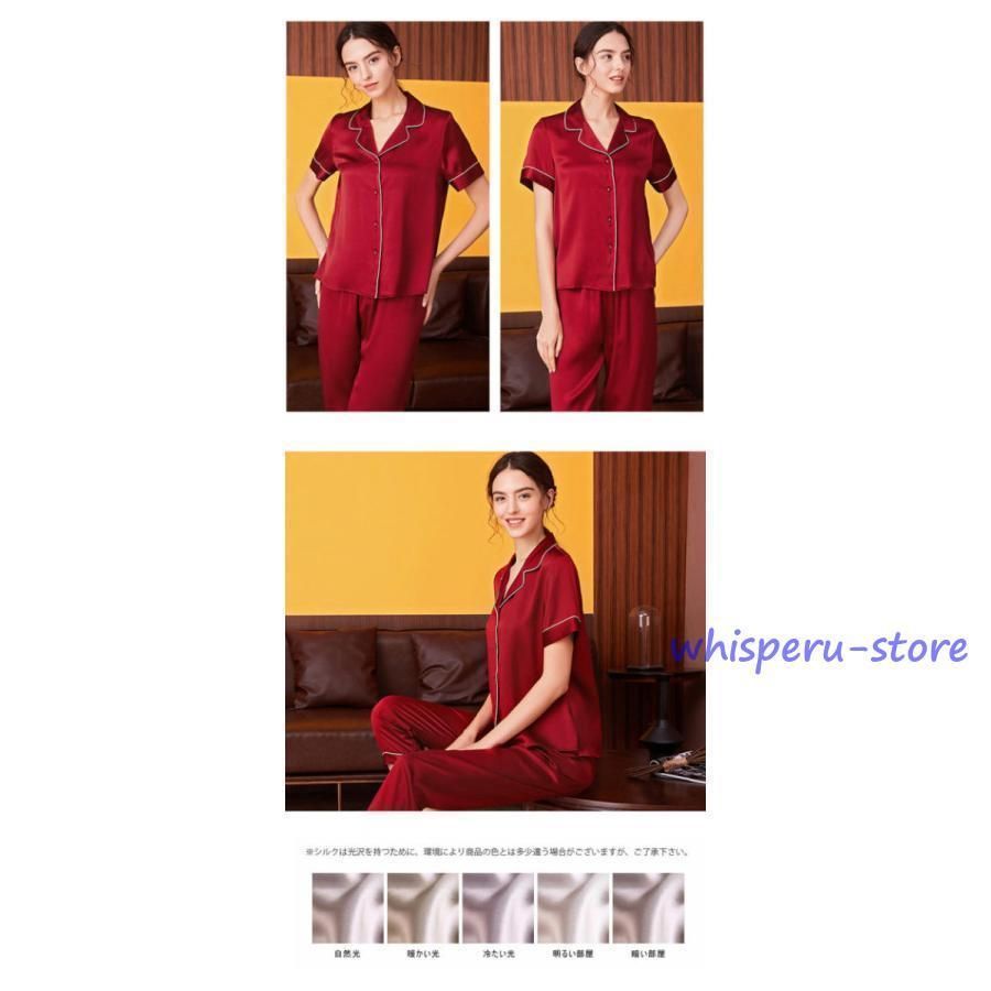 シルク パジャマ レディース 上下セット シルク100% 保湿 半袖 長ズボン セット ルームウェア 寝間着 春 シルクウェア ナイトウェア 部屋