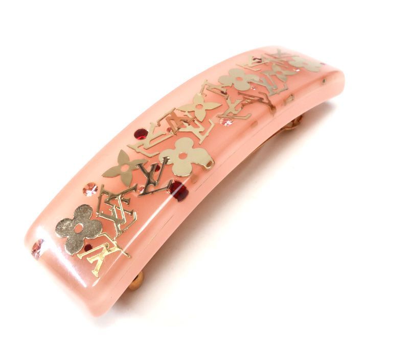 ルイヴィトン バレッタ アンクルージョン ヘアクリップ 髪留め レッド ピンク系 ゴールド金具 M 65305 ヘア ラインストーン LOUIS VUITTON 34335
