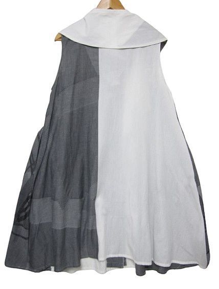 慈雨 ジウ JIU センソユニコ ノースリーブ シャツワンピース チュニック 和柄アートプリント グレー Lサイズ40 管理番号 -251102-1 K 990