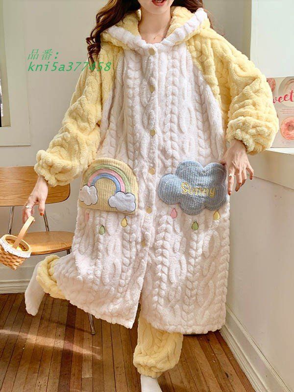 ルームウェア もこもこ パジャマ 冬 長袖 ナイトガウン あったか モコモコ 前開き 部屋着 寝巻き 着る毛布 暖かい フード付き kni 5 a 377458