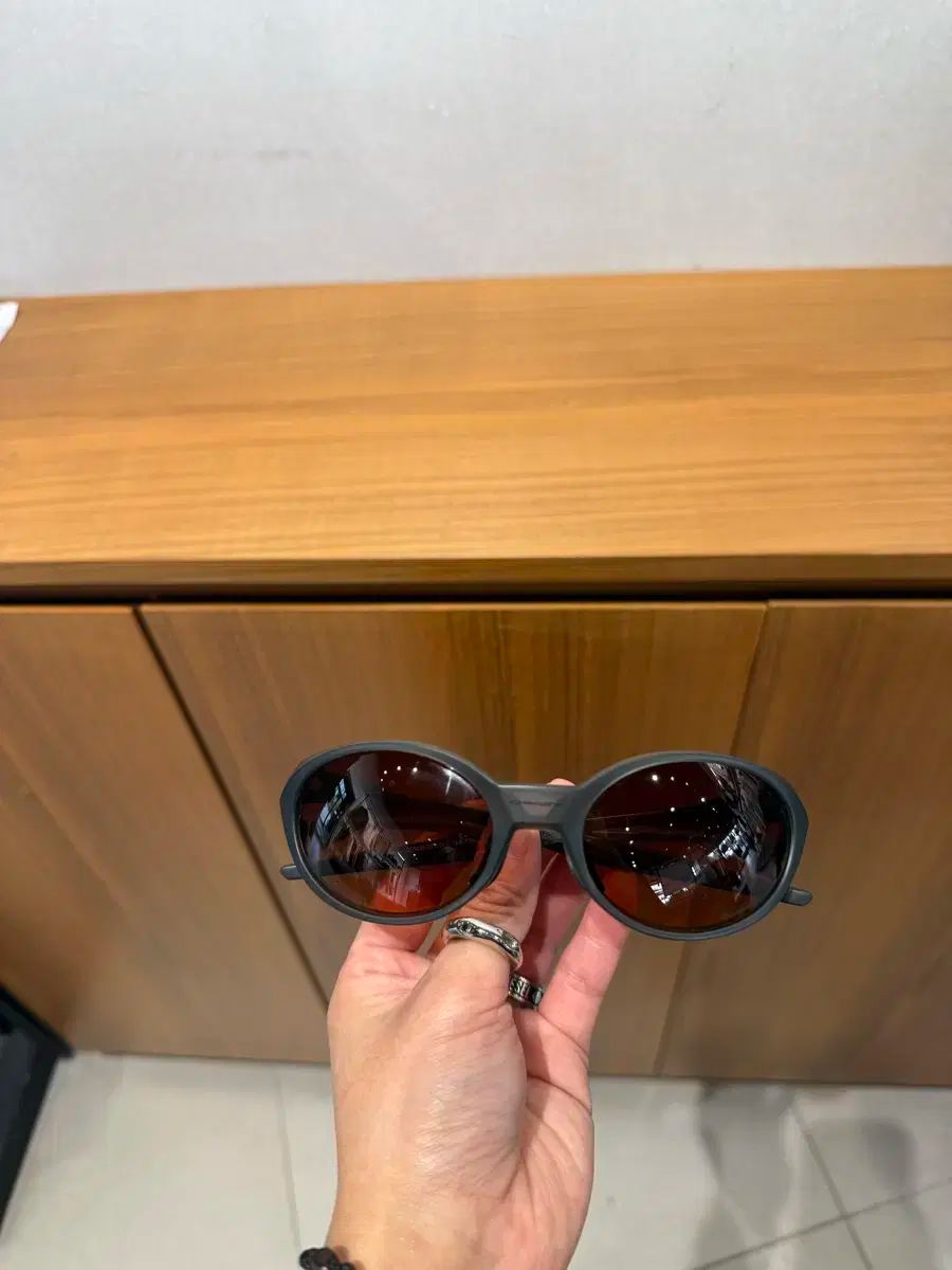 黒いフレームに茶色のレンズです。
