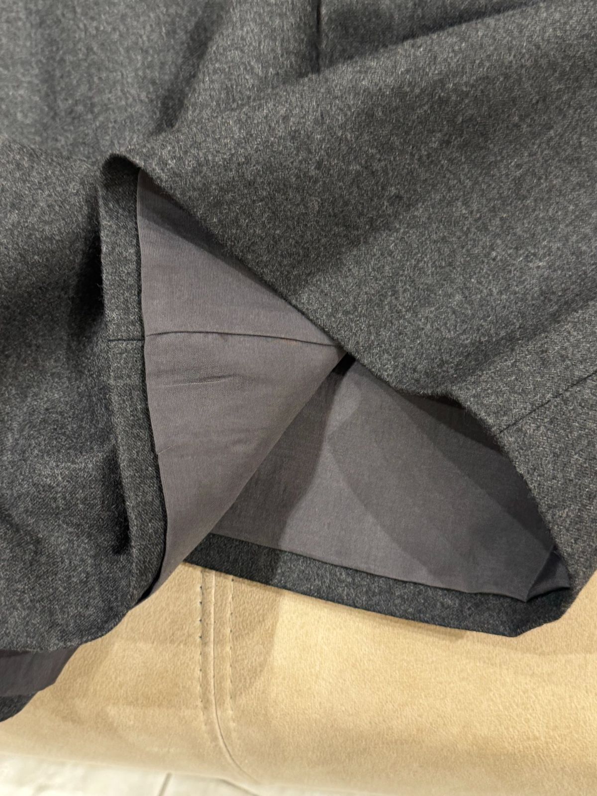 グレーS L ブルネロクチネリ レディース ウール ジャケット&スカート セット クリスタル装飾襟 オフィス スーツ