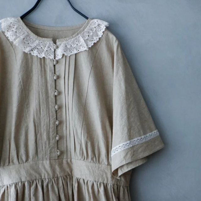 表地コットン90%リネン10%/付属くるみボタン、リネン製レース