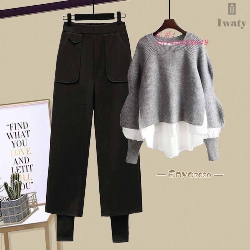2点セットニットセーター ハイウエストカジュアルパンツ