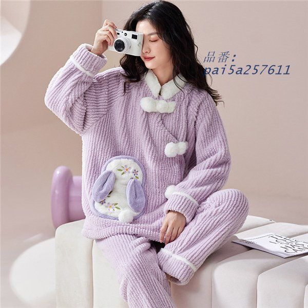 もこもこ ルームウェア 上下セット パープル 紫 パジャマ 寝巻き あったか 部屋着 長袖 前開き モコモコ 冬 暖かい 大人用 ふわふわ pai 5 a 257611