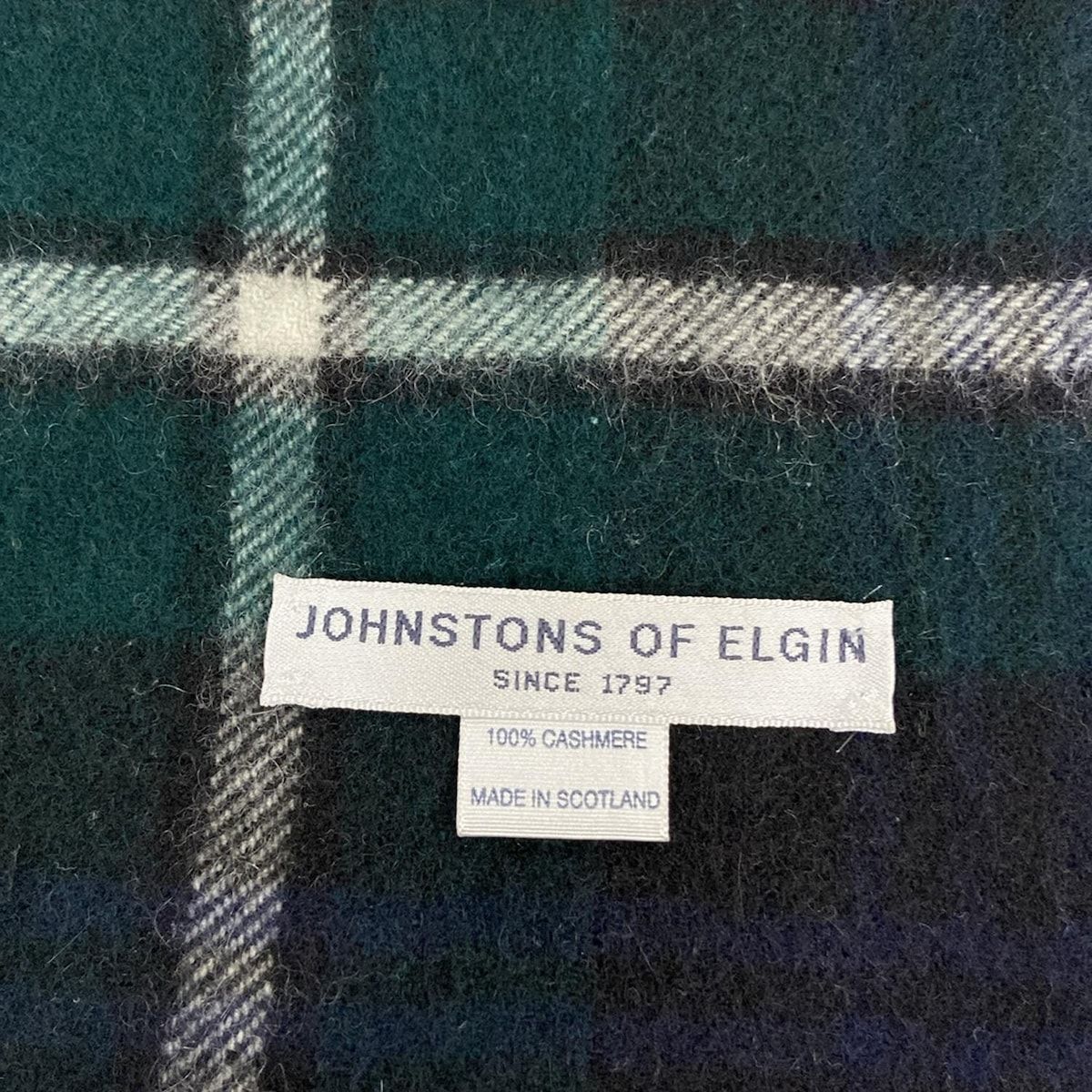 johnstons of elgin ジョンストンズ ストール ショール - ネイビー×グリーン×マルチ チェック柄 カシミヤ