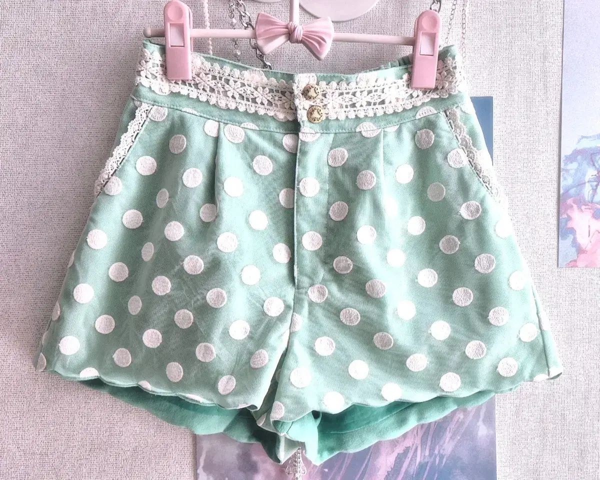 リズリサ ミント ドット レース キュロット