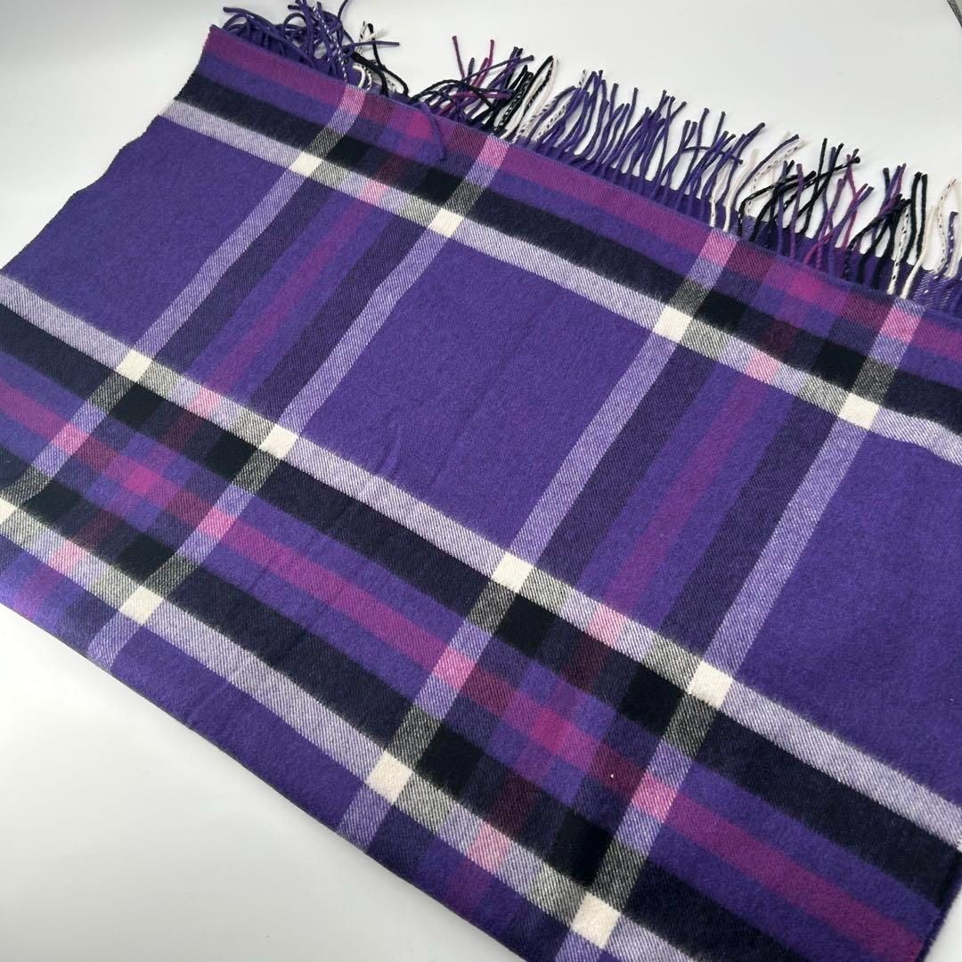 Johnston’s Of Elgin 希少カラー✨美品 ジョンストンズ 大判ストール カシミア100% チェック パープル 紫 レディース