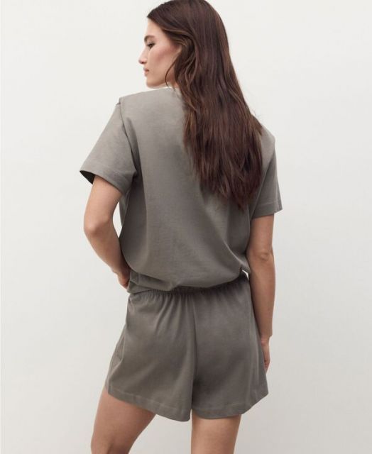 マンゴ レディース ナイトウェア アンダーウェア Women s 2-Piece Cotton Short-Sleeved Pajamas Medium Brown