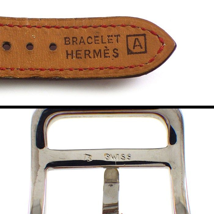 エルメス HERMES 腕時計 Hウォッチ HH 1.210 スクエア ホワイトギョーシェ文字盤 レッド 革ベルト SS クオーツアナログ