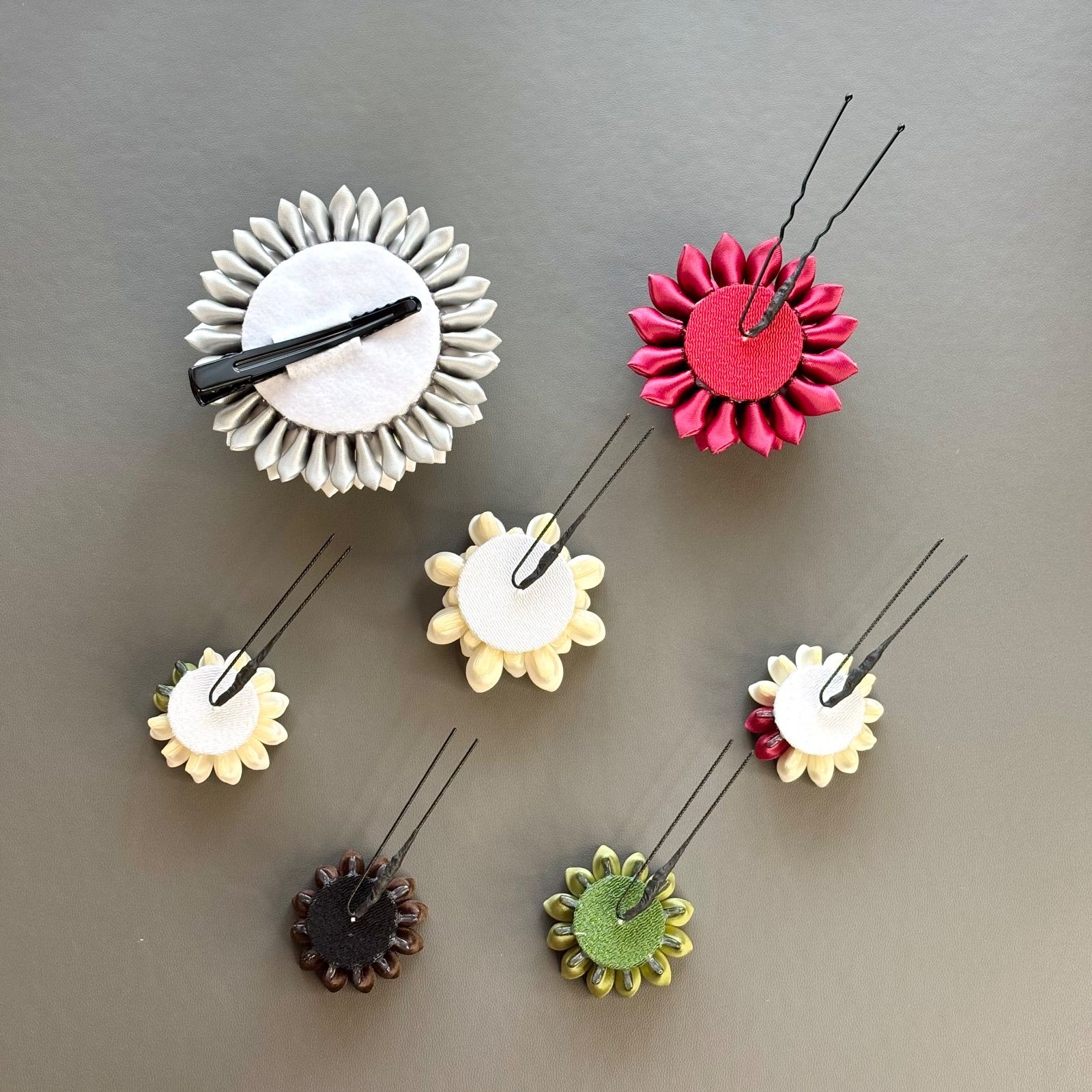 《サテン生地のつまみ細工髪飾り 18点セット》