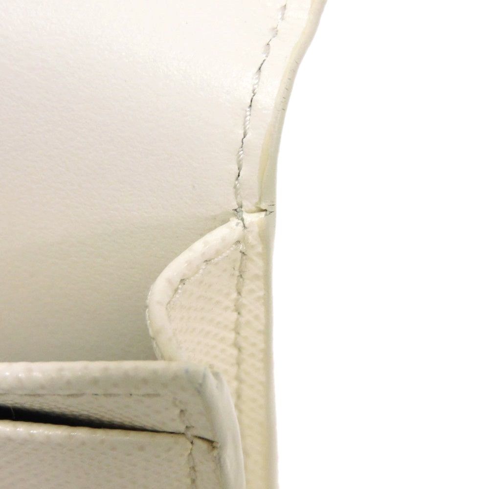 PRADA プラダ サフィアーノ トライアングル カードホルダー カーフ ホワイト ゴールド パスケース 二つ折り マチ付き コンパートメント RFID ICチップ ロゴ エナメル メタル ビアンコ カードケース 1 MC 110 QHH F 0009