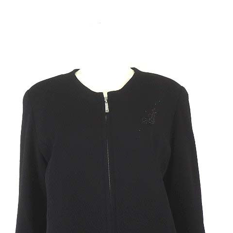 ダジュール D azur 上下セットアップ スカートスーツ ふくれ ジャガード ジップアップ ノー ジャケット ロングスカート M 9 黒 ブラック