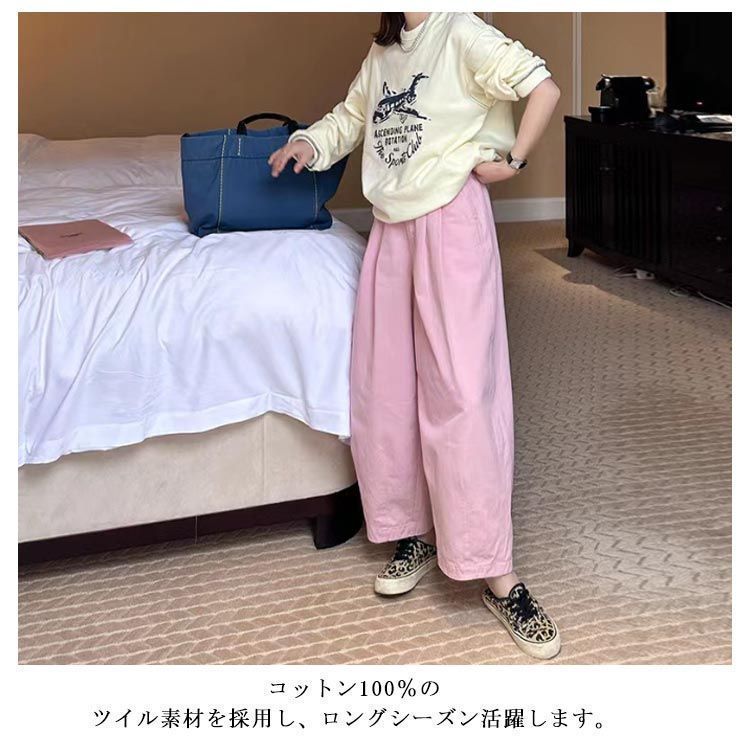 ワイド ハイウエスト 脚長効果 レディース バルーンパンツ ツイル地 ゆったり ワイドパンツ タック入り ゴムウエスト カーブパンツ 春 大人 カジュアル キレイめ 体型カバー 夏 秋 tomin 598557