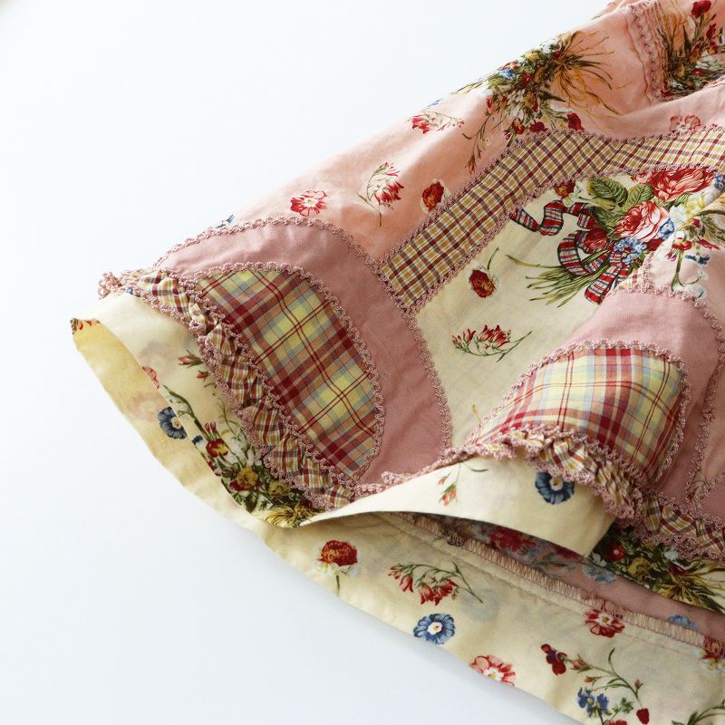 【品名】極美品 人気アイテム ピンクハウス PINK HOUSE コテージチャーム柄 刺繍入パッチワークスカート ピンク┃花柄 フラワー